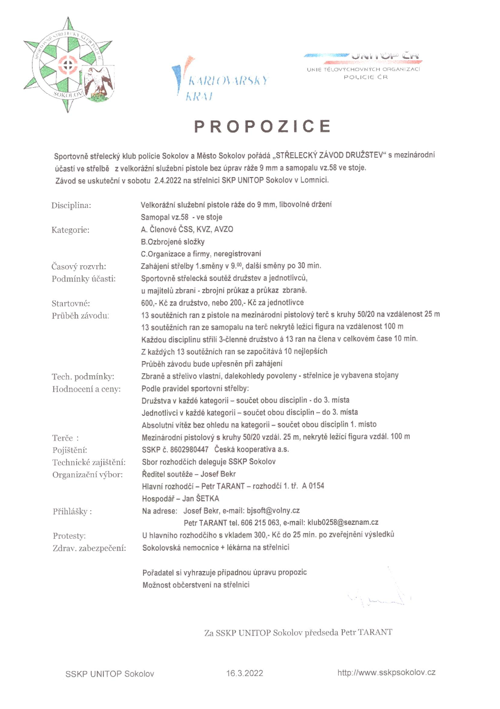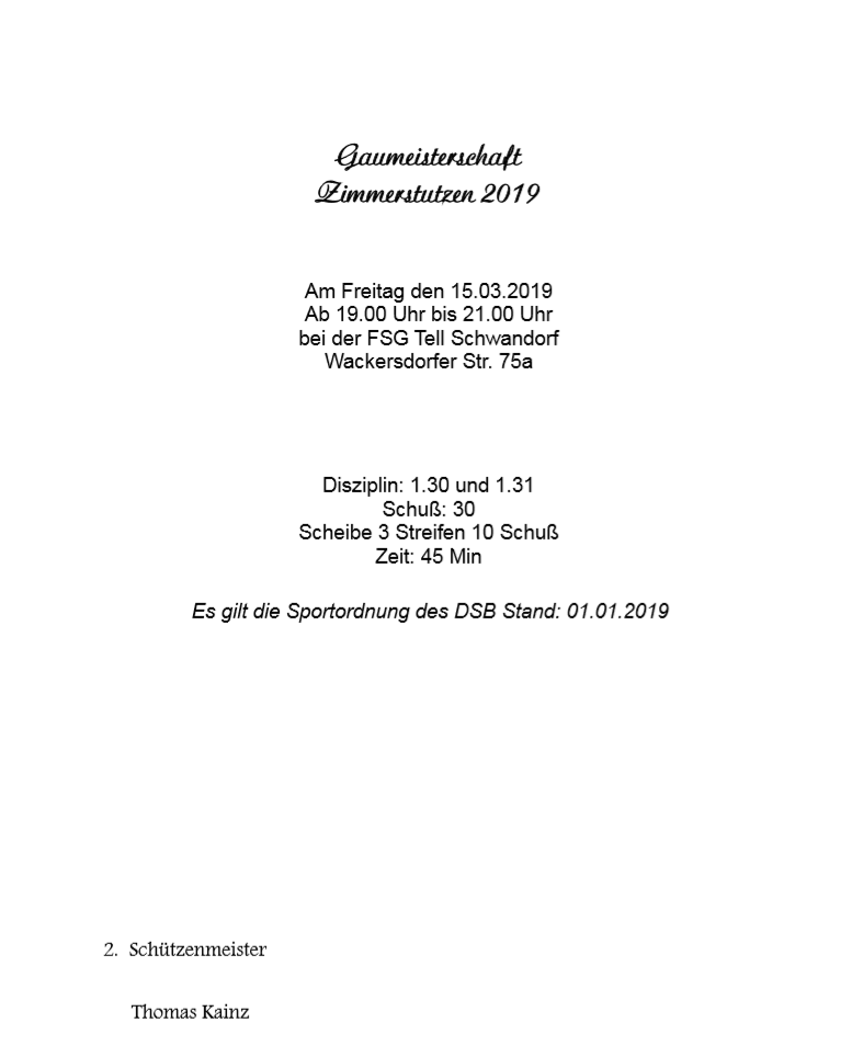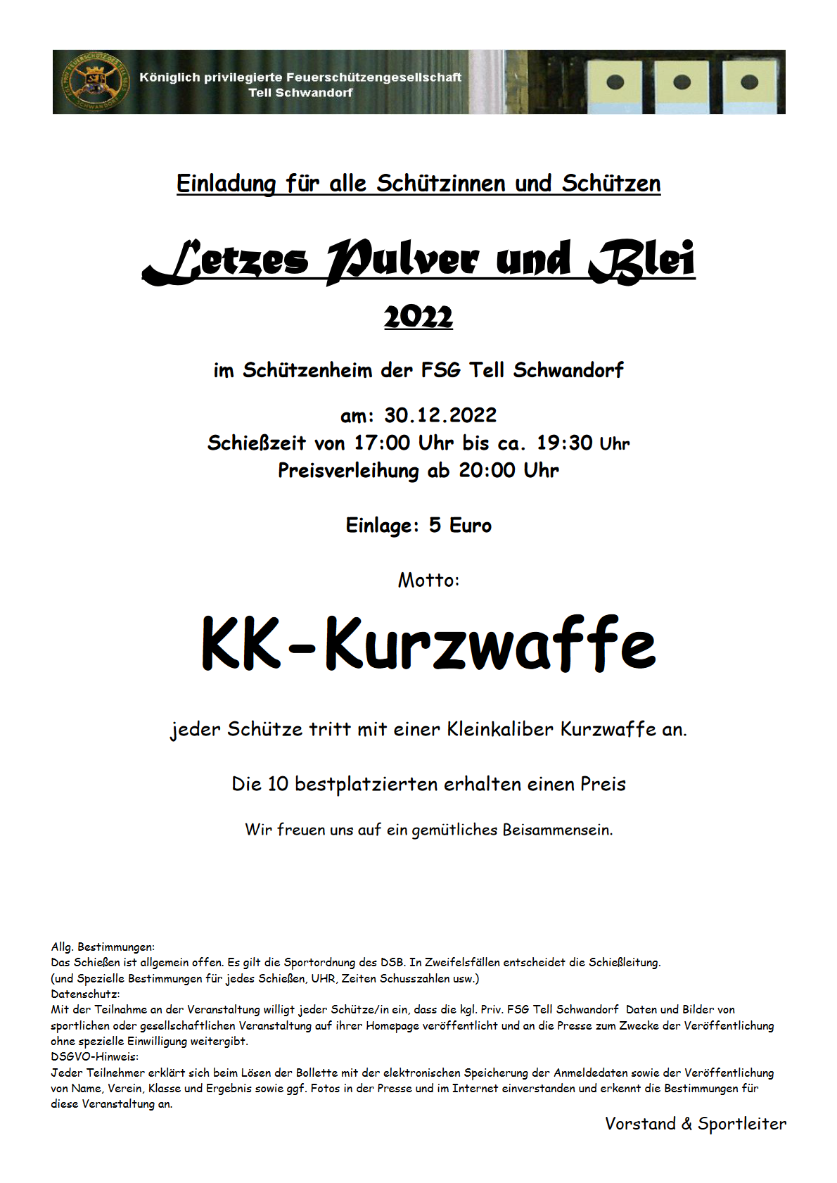 Kombinierter Wettkampf mit Pistole 9mm (25m) und Gewehr 7,62mm (100m) am 2. April bei unseren Freunden in Sokolov. Es werden jeweils 13 Schuß abgegeben. Die besten 10 Schuß werden gewertet. Mannschafts- und Einzelwertung. Eine Mannschaft besteht aus drei Schützen. Interessensbekundungen und Informationen beim 1. SM. der FSG Tell.