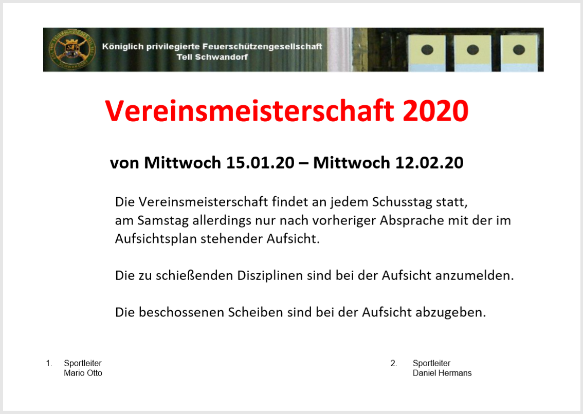26. Januar - Vereinsmeisterschaft