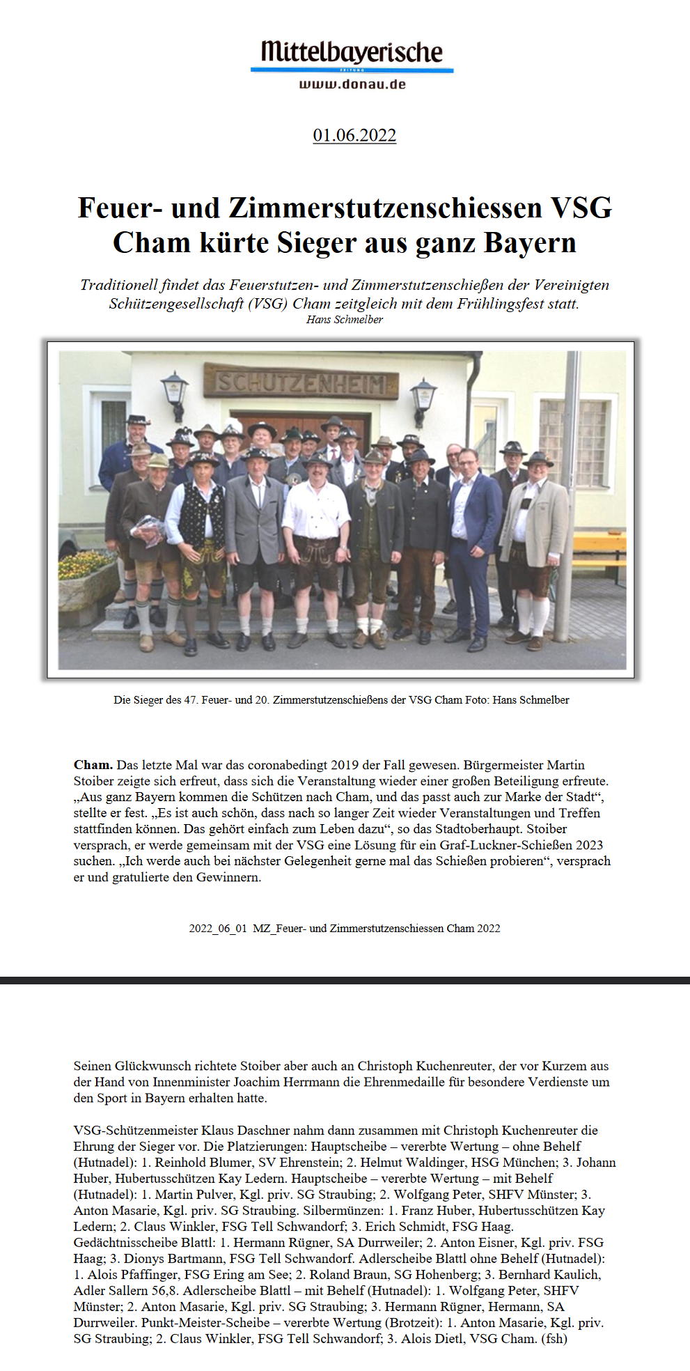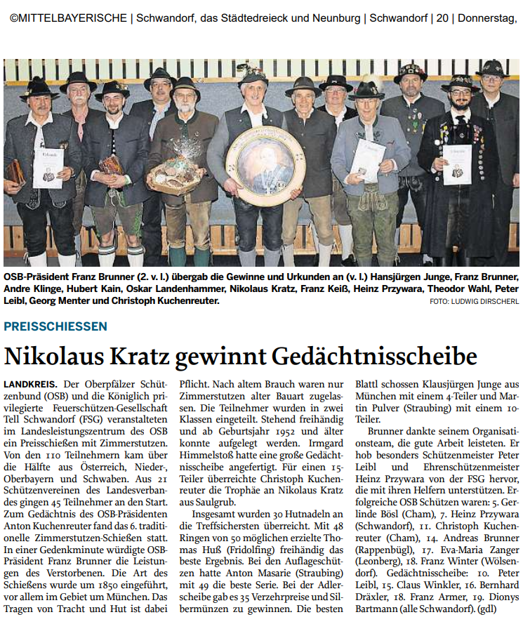 [MZ] Feuer- und Zimmerstutzenschiessen VSG Cham kürte Sieger aus ganz Bayern
