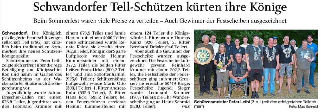 Schwandorfer Tell-Schützen kürten ihre Könige