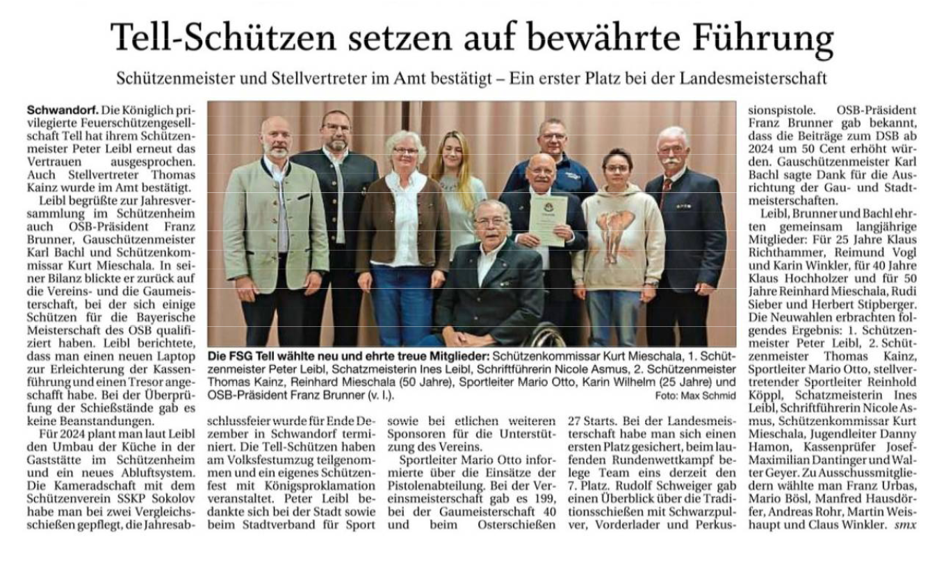 Tell-Sch?tzen setzen auf bew?hrte F?hrung